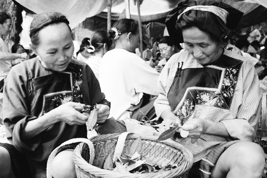 正是保靖黄金茶育苗扦插时节,葫芦镇每天投入300多劳动力扦插育苗,到目前为止,全镇已扦插育苗80余亩。图为8月25日,苗家阿婆们在剪茶叶枝条。 向万银 摄