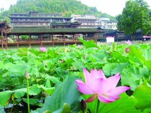8月30日,永顺县芙蓉镇荷花池美景一角。为加强芙蓉镇旅游景点圈建设,该县全力打造圈内更多的自然人文景点,使其与张家界、凤凰形成三点一线的大旅游格局。