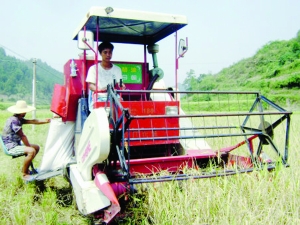 8月30日,永顺县大坝乡农民熊恩波正在收割水稻。据了解,自从国家实施农机补贴以后,该县农民已购买180多台联合收割机,目前已有100多台联合收割机投入到万坪、石堤、大坝、塔卧等粮食主产区忙抢收。