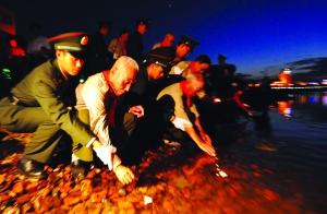 当日,边城黑龙江省黑河市在黑龙江畔举行纪念世界反法西斯战争胜利65周年活动。黑河市近千名解放军官兵和各界群众手捧点燃的蜡烛,步行至黑龙江边参加蜡烛漂放仪式。漂放仪式后,黑河市与一江之隔的俄罗斯布拉戈维申斯克市同时燃放焰火,以此表达对世界反法西斯战争胜利65周年的纪念和对世界和平的祝愿。 新华社记者 王建威 摄