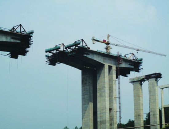 9月1日,吉茶高速C2标峒河大桥正在抢抓晴好天气进行挂篮施工。峒河大桥是吉茶高速公路横跨峒河及G209国道的大桥,全长1214米,最高架空高度为91米。据介绍,目前进行的挂篮施工预计今年年底前完成。 陈绪新 摄
