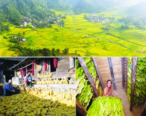 ③ 古丈县的烟农正忙着采收烟叶。