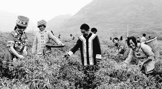 近日,龙山县召市中学的土家族教师,在信用社扶持的辣椒基地中帮助农民采辣椒。 截至10月2日,该县“农业产业化龙头企业辣椒基地”种植的2.5万亩优质辣椒,收获数量已经达到5万吨,不仅满足了农业产业化龙头企业的生产需要,而且供应了市场,受到消费者的普遍欢迎。据悉, 今年龙山县通过信用社提供的3500万元贷款,为县内的省级农业产业化龙头企业建立了2.5万亩优质辣