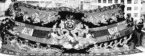 11月19日上午,龙山县“叶氏土家织锦作坊”的员工们,高兴地展示刚刚完工,面积近30平方米的大型土家织锦精品《巴风土韵》。此织锦长7米、宽4.2米、重20公斤,由龙山县“叶氏土家织锦作坊”的“中国土家织锦优秀传承人”叶丽萍、刘艳等8名技艺精湛的土家织女,前后花费18天精心编织完成。作品的创意和图案,由湖北民族学院提供,主要表现了生活在武陵山下、鄂西一带的土家族青年男女,围绕在篝火旁,用土家族摆手舞尽情展示火热生活的场面。 易长松 摄