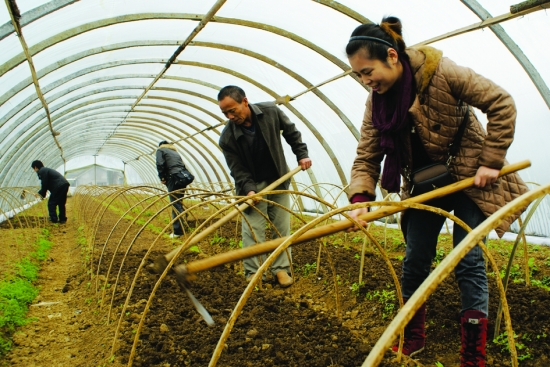 12月3日,为了使菜农得到更好的蔬菜栽培技术和促进菜农增收,花垣县蔬菜局党员来到创先争优活动示范基地,为菜农传授栽培技术。 吴 柯 摄