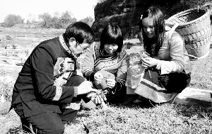 12月8日,龙山县政协67岁退休干部、退伍军人、“龙山县非物质文化遗产土家族医药传承人”彭书源(左),在该县城郊山上,向土家族女青年传授土家族中草药知识。退休7年来,彭书源在推广和传承土家族医药方面做出了突出贡献,受到土家族群众和社会各界的一致好评。
