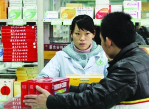 12月10日,广西河池市凤山县一家药店的工作人员在为消费者介绍药品。