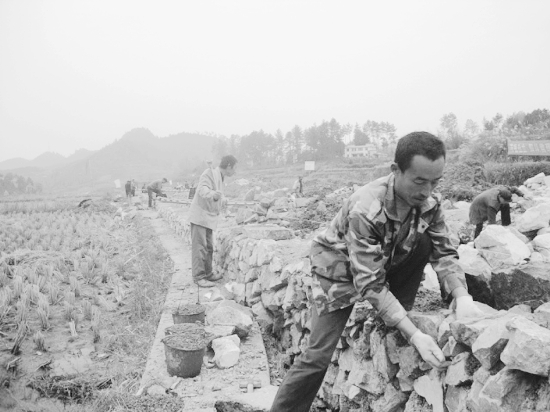 入冬以来,永顺县大力实施农田基本建设,在县农开办、国土局、水利局等单位的齐抓共管下,全面进行河堤治理、塘坝整修、修缮渠道等基础工程,为农田增收提供强有力的保障。图为松柏镇湖坪村村民正在整修河堤。 罗远程 摄