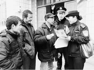 1月8日,吉首市公安局乾州派出所民警来到社塘坡乡西门口村向村民讲解防火、防盗、防抢、防骗等安全防范常识并发放警民联系卡。入冬以来,该所组织民警深入施工现场、田间地头、村组农户开展登门问计促冬防活动,听取辖区群众对社会治安状况的反映,增强群众冬季安全防范意识,收到了很好的效果。 李进辉 摄