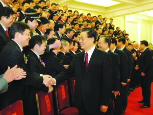 中共中央 国务院 胡锦涛出席大会并为最高奖获得者等颁奖 温家宝讲话 李长春习近平出席 李克强主持 新华社北京1月14日电(记者 吴晶晶 邹声文)中共中央、国务院14日上午在北京隆重举行国家科学技术奖励大会。党和国家领导人胡锦涛、温家宝、李长春、习近平、李克强出席大会并为获奖代表颁奖。温家宝代表党中央、国务院在大会上讲话。李克强主持大会。 人民大会堂里灯光璀璨,鲜花吐艳,气氛庄重而热烈。奖励大会开始前,胡锦涛等党和国家领导人亲切会见了2010年度国家科学技术奖励获奖代表。 上午10时,大会在雄壮的国歌声中开始。在热烈的掌声中,中共中央总书记、国家主席、中央军委主席胡锦涛首先向获得2010年度国家最高科学技术奖的中国科学院院士、中国工程院院士、国家自然科学基金委员会特邀顾问、中国科学院金属研究所名誉所长、著名材料科学家师昌绪,中国工程院院士、上海交通大学医学院附属瑞金医院终身教授、著名血液学专家王振义颁发奖励证书,并同他们热情握手,表示祝贺。随后,胡锦涛等党和国家领导人向获得国家自然科学奖、国家技术发明奖、国家科学技术进步奖和中华人民共和国国际科学技术合作奖的代表颁奖。 中共中央政治局常委、国务院总理温家宝代表党中央、国务院向2010年度国家科学技术奖获得者表示热烈祝贺,向全国广大科技工作者表示诚挚问候和崇高敬意。他强调,崇尚科学技术的民族,才是最有希望的民族。中华民族要屹立于世界民族之林,必须有强大的科技,有大批创新型人才。“十二五”期间,我们要以科学发展为主题,以加快经济发展方式转变为主线,促进经济长期平稳较快发展和社会和谐稳定。加快转变经济发展方式,实现科学发展,必须依靠科技支撑和引领。要把科技摆在更加突出的位置,瞄准世界科技发展前沿,加强基础研究和战略高技术研究,继续推进重大科技专项和重点科技计划,大力实施知识创新工程和技术创新工程,集中力量突破一批核心关键技术,加快发展战略性新兴产业,在新一轮科技革命和产业革命中赢得发展的主动权。 温家宝指出,必须把促进科技成果向现实生产力的转化,作为“十二五”时期科技工作的一项重要任务。要大力增强技术创新和研发能力,大幅度提高科技成果转化应用水平。要建立健全企业主导技术研发的体制机制,鼓励企业协作开展关键共性技术研发。要鼓励广大科研人员、科研院所和高等学校以多种形式与企业合作,共同推进技术创新和科技成果转化应用,提升企业和产业素质,增强市场竞争能力。要深化科技体制改革,促进科技资源优化配置和有效利用,推动科技与经济发展紧密结合。要坚定不移地实施国家知识产权战略,保护广大科技工作者和全社会的创新动力,激发创新活力。要在全社会大力弘扬追求真理、独立思考、大胆探索、勇攀高峰的科学精神,发扬学术民主,倡导百家争鸣,鼓励创新,宽容失败,为科技进步和优秀人才成长营造良好的学术环境和社会环境,努力培养和造就一支规模宏大、素质优良的科技队伍,为我国科技事业发展奠定坚实的人才基础。 中共中央政治局常委、国务院副总理李克强在主持大会时强调,建设创新型国家、加快转变经济发展方式、赢得发展先机和主动权,必须依靠科学技术的力量。希望广大科技工作者以获奖者为榜样,继续发扬求真务实、勇于创新的科学精神,不畏艰险、勇攀高峰的探索精神,团结协作、淡泊名利的团队精神,报效祖国、服务社会的奉献精神,共同肩负起科教兴国的重任。 中共中央政治局委员、国务委员刘延东在会上宣读了《国务院关于2010年度国家科学技术奖励的决定》。 师昌绪在代表全体获奖人员发言时表示,中央召开科学技术奖励大会,中央领导同志向获奖人员代表颁奖,这充分体现了党和国家对科技事业的高度重视和对科技工作者的热情关怀。全体科技工作者要以科教兴国为己任,将自己的专长同国家发展、社会进步、人民幸福紧密结合起来,为建设创新型国家、为实现全面建设小康社会奋斗目标作出更大的贡献。 出席奖励大会并参加会见的中央领导同志还有:王岐山、刘淇、刘云山、李源潮、张德江、徐才厚、令计划、路甬祥、乌云其木格、韩启德、周铁农、马凯、杜青林、陈奎元、黄孟复、万钢、陈宗兴以及中央军委委员陈炳德、李继耐、廖锡龙、常万全。 中央和国家机关及军队有关方面负责同志,国家科技教育领导小组成员,国家科学技术奖励委员会委员和首都科技界代表等共约3300人出席大会。 2010年度国家科学技术奖励共授奖356项(人)。其中,国家最高科学技术奖获得者2人;国家自然科学奖授奖项目30项,其中一等奖空缺、二等奖30项;国家技术发明奖授奖项目46项,其中一等奖2项、二等奖44项;国家科学技术进步奖授奖项目273项,其中特等奖3项、一等奖31项、二等奖239项;授予5名外籍科学家中华人民共和国国际科学技术合作奖。 |
