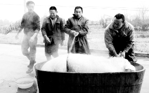 1月7日,龙山县石羔镇永兴村第二组的土家族农民,正在杀年猪迎新春。春节将至,湘鄂边区的土家族农民,纷纷以杀年猪的传统方式,迎接新春佳节的到来。