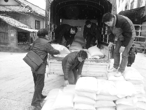 1月17日,凤凰县民政局干部冒着冰冻和大雪来到高寒苗寨禾库镇,将大米发放给该镇受灾困难群众。春节将至,凤凰县政府和民政部门积极调运救灾物资和大米100多吨,解决受灾群众的困难,让他们过好春节。 程明君 陈满妹 摄