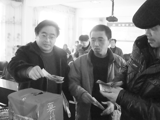 永顺县高坪乡政府干部积极支持慈善事业,让弱势群体过上欢乐祥和的春节。图为1月22日,高坪乡政府干部通过“慈善一日捐”的方式积极捐献慈善基金。 唐其柏 摄