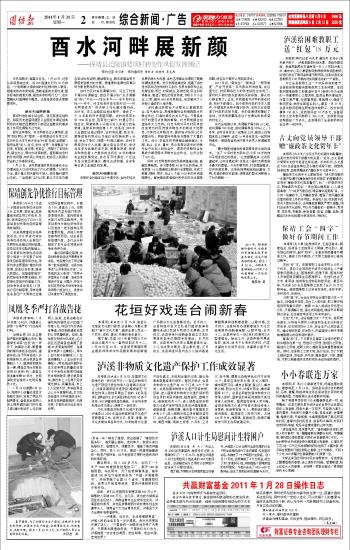 本报讯(潘尚德)1月25日,笔者从花垣县文化部门获悉,该县精心为群众烹制了“春节文化大餐”,确保全县人民过一个欢乐、祥和、喜庆、热闹的兔年春节。 据了解,花垣2011年春节群众文化活动从腊月十七一直持续到正月十二。1月20日至25日,该县将开展国际职业摄影师李邦华作品摄影展和迎新春广场群众文化送春联活动;正月初二,该县将组织各文艺队进行踏街表演和趣味活动以及城乡民间文艺展演;正月初三,该县将举行迎新春县城各文艺队展演和老年汉剧团专场演出;正月初四,该县将举办未来之星新春音乐会、少儿书法美术展览、苗山歌比赛;正月初五,该县将组织县内各少儿培训基地舞蹈展演和迎新春苗歌、山歌对唱;正月初六,该县将举办迎新春城乡文化交流展演和迎新春苗歌、山歌对唱;正月十二,该县将举办一场《我们恋爱吧》大型演唱会。除此之外,该县积极开展送电影、送戏、送书下乡等形式多样、内容丰富的文化娱乐活动,丰富群众春节文化生活。 |