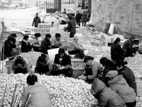 2011年,随着柑橘价格回升,永顺县所有柑橘在春节前基本销完,形成产销两旺的格局。图为 1月30日,永顺县芙蓉镇偏远山村的110吨柑橘被一次性收购包装上车。 唐其柏 摄