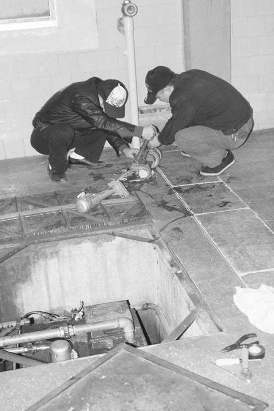 春节期间,为了加强安全生产建设,在做好安全供电的同时,加强安全生产检查,杜绝事故发生,及时查出,及时处理。图为1月26日上午,生产维修人员正在抢修机电设备。 米跃进 摄