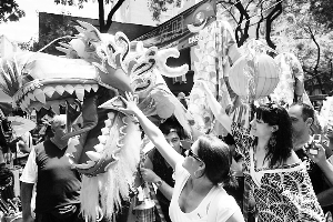 ① ② ③ ④ ① 1月30日,在阿根廷首都布宜诺斯艾利斯“中国城”举办的庙会上,当地民众触摸龙头。 阿根廷华侨华人当天在布宜诺斯艾利斯的“中国城”举行春节庙会,庆祝中国农历新春佳节的到来。这是当地华人连续第五年举办春节庙会活动。 新华社发 (巴勃罗·莫利纳 摄) ② 1月29日,在罗马尼亚首都布加勒斯特,舞狮表演在迎新春游园会上上演。当天,中国驻罗马尼亚大使馆和布加勒斯特市在北部的“海鸥”公园共同举办游园会,迎接中国新春和农历兔年的到来。 新华社发 (佩特雷斯库 摄) ③ 1月30日,在美国旧金山唐人街举行的年宵花市上,几个美国姑娘和中国财神合影。 为期两天的旧金山年宵花市于当天结束。当地民众和游客在花市上不仅可以选购年货,还可以观赏文艺表演。年宵花市拉开了旧金山农历新年一系列庆祝活动的序幕。 新华社发 (刘艺霖 摄) ④ 1月29日,在巴西圣保罗自由区广场,艺术家们进行表演。在中国传统春节即将到来之际,巴西圣保罗华人华侨纷纷组织各种迎新活动,庆祝新春佳节的到来。 新华社记者 宋为伟 摄 |