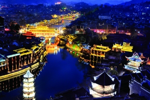 1月31日晚备受关注的凤凰古城沱江风光带夜景亮化工程,正式“亮灯”迎客,目前竣工的凤凰古城夜景亮化工程,是项目一期工程,工程立足凤凰古城的意境和特色出发,运用灯光的强弱、冷暖、色调和层次感,将“山、水、城、人、文”融为一体,体现梦回故乡的意境与韵律。为成功对接世界旅游发展潮流,凤凰县结合县情实际,提出“十二五”期间着力打造“世界品牌大凤凰、休闲靓丽夜凤凰、县强民富金凤凰”的发展目标。凤凰古城沱江风光带夜景亮化工程是打造“夜凤凰”的核心内容,该项目内容包括:一江即一条沱江景观沿线;二带即沿岸两条立面景观带;三桥即凤凰大桥,跳岩梁桥,虹桥;四山体即东岭背景区、桐坡背景区、南华山背景区、笔架山背景区和八节点即南华门、北门、东门、西门、沙湾、古城墙、文化广场、道门口。 2010年,凤凰共接待国内外游客520万人次,实现旅游总收入30.02亿元。春节期间,各地游客一饱凤凰夜景。 张 谨 张顺心 曾文松 张寒烟 陈利 陈群智 摄影报道 欣赏凤凰古城夜景,就是要从夜景的灯光语言中品味出古城的一份诗意。做凤凰古城夜景的目的是什么?我的体会是:用光影元素来提升凤凰古城美;用光影元素来表达凤凰古城品味;用光影元素来深度展示古城的历史和文化。让游客通过夜景看到凤凰古城晚上风情的一面,用夜景的风情来拨动游客的情绪,让游客激动、让游客宁静、让游客忘我、让游客融入凤凰古城夜景不同的情绪之中。 凤凰夜景景观具有韵律感,他利用灯光特有的纵深强弱特点,将民居层次、民居的错落、民居的风情做出来,形成了凤凰“山、水、城、人、情”的夜景语言,使古城成为富有诗情画意的山水画卷。然后通过夜景灯光的色度温和结构层次的变换,产生古城夜景的音乐节奏美,进一步展示凤凰历史文化名城的魅力。 解读凤凰夜景 张顺心 |