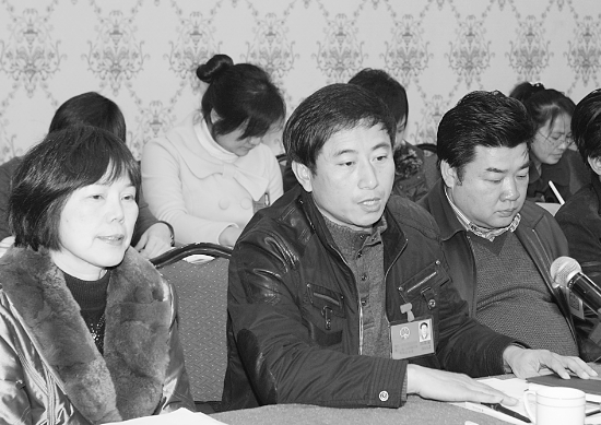 吉首市代表周顺新(左二)就吉首城市建设提出自己的看法。