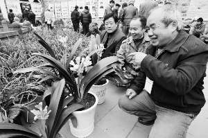 2月27日,吉首市民在该市乾州古城文庙内观赏满院花开郁香的春兰。当日,该市在素有历史悠久、远近闻名的兰花之乡———乾州古城举办“2011之春兰花博览会”, 来自湘鄂渝黔等8个省市二十多个地区数十种名贵万盆兰花,叶馨花香,沁人心脾,让人们深切地感受春天的气息。