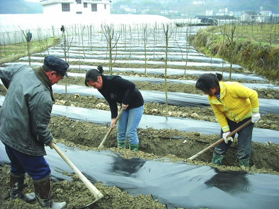 3月2日,永顺县吊井乡吊井村农民,在给已施底肥的蔬菜覆盖地膜。这样移植的菜苗,不长草,旱涝保收,走出了一条“保温、保湿、保肥、保苗”的蔬菜增产增收之路。 吴 华 摄