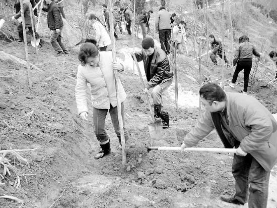 3月2日,州档案局全体人员积极参加“八百里绿色行动”。图为州档案局干部正在植树。 陈 艺 摄