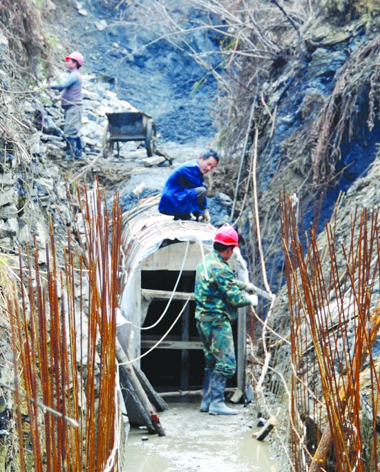 3月7日,保靖县葫芦镇境内杜塘坪水库隧洞出水口处施工人员在扎钢筋。该水库建于1966年初,几十年来,由于长期失修漏水严重,不能保证农田正常灌溉。2010年,该县水利部门投入资金340万元对水库堤坝进行整修。目前,堤坝加固砌块护墙工程已全面完成,水库隧洞引水出口正在紧张施工中,确保春耕灌溉用水。 向万银 刘云庄 摄