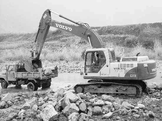 3月4日,永顺县吊井乡吊井村灵溪上游,挖机在清理河床。多年来,沙石日积月累,河床不断加高,该河成了“地上河”,洪水来时,淹没农田。今年,该乡兴修水利,清运沙石砌保坎,让环境治理与经济增长得到同步进行。 吴 华 摄