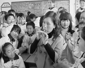近几年来,龙山县一中一直把少数民族地方特色文化作为一项重要的校本课程,积极开展民族民间文化进课堂活动,将摆手舞、竹竿舞、咚咚喹等传统文化搬进课堂,深受师生们的喜爱。图为4月1日,该校教师正在向学生们演示咚咚喹的吹奏方法。