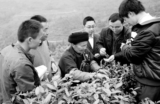 4月2日,湘西职业技术学院师生在保靖县葫芦镇大岩村茶园里向苗家阿婆学习采茶技术。近年来,湘西职业技术学院为农村培养既懂业务又懂技术的人才,采取走出校门的教学方法,让学生从社会实践中真正学到知识。 向万银 摄