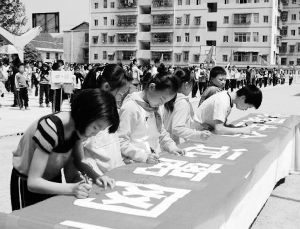 4月25日,永顺县塔卧镇苏区小学开展了“远离网吧,健康成长”主题教育活动,1000多名学生表示从自身做起,远离网吧,养成健康文明的生活和学习习惯。图为学生们正在签名。