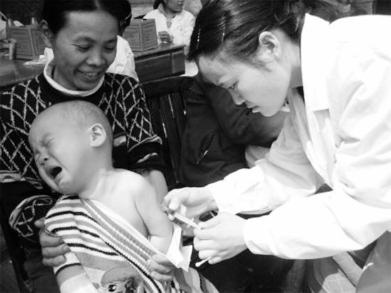 4月24日,泸溪县疾控中心为合水镇踏虎村少年儿童接种疫苗,预防麻疹和腮腺炎。 该县疾控中心利用节假日休息时间,组织医护人员到各乡镇,为8个月以上、15岁以下的儿童和少年接种疫苗。 李焱华 摄