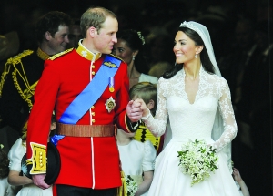 当地时间上午11时整,坎特伯雷大主教在伦敦威斯敏斯特大教堂为一身戎装的威廉和身着象牙白色弋地婚纱的凯特主持婚礼仪式,英国和来自其他国家的王室成员和社会名流、政要,以及威廉和凯特的挚友共约1900人见证了这一幸福时刻。