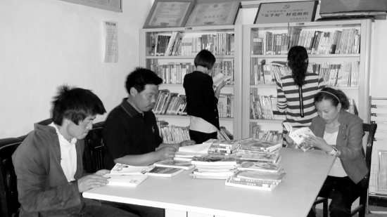 读书开启智慧,知识改变命运。为使农家书屋真正起到“丰富群众文化生活,帮助农民提高科技致富能力”的作用,龙山县今年来在狠抓150个新的农家书屋建设的同时,积极探索农家书屋的长效管理机制,对以往建成的154个农家书屋加强管理,取得了很好的成果。图为4月27日大安乡大红村村民在农家书屋借阅图书的情景。 (记者 陈亚丽 通讯员 向小红)