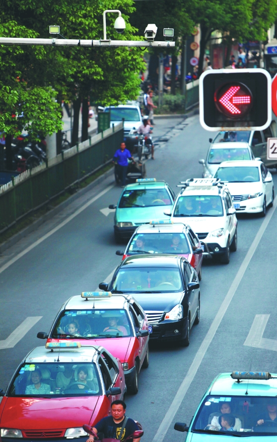 5月16日,吉首市人民北路天桥路段汽车在“电子警察”监控下等待绿灯通过。备受吉首市民关注的“城区电子警察监控系统”于5月16日正式启用,对闯红灯、压双黄线、乱调头等交通违章行为及城市治安状况进行24小时监控。据了解,此次城区电子警察监控系统,新增电子探头141个,电子出城卡口5处,在市内12个路口设置了电子探头。“城区电子警察监控系统”正式启用后,将有