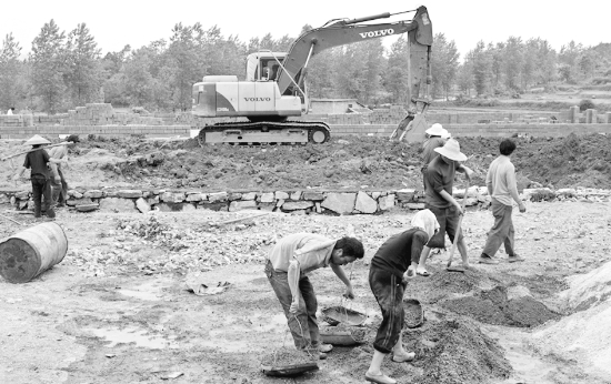 5月14日,位于花垣县道二乡接溪村的德农牧业公司良种肉牛繁育及深加工项目首期工程施工现场,民工们正忙着建设养殖场房舍。该项目集肉牛养殖、饲料加工、屠宰交易及皮革生产、生物制品等为一体,分5期投入实施,规划总投资11.39亿元。 龙艾青 摄