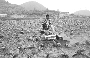 永顺县人武部提供资金帮扶、技术咨询服务等,鼓励和支持民兵勇当科技排头兵。图为5月21日,永顺县松柏镇基干民兵向仍村,正在用培土机为烟苗培大脚。