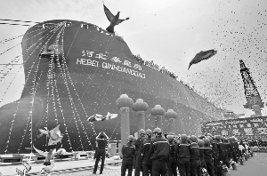 据介绍,“河北秦皇岛”号总长235米,型宽38米,是目前山海关船舶重工有限责任公司建造的最大船舶。