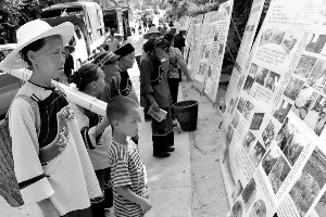保靖县安监局、公安局、消防大队等单位,积极开展安全生产知识及安全生产事故警示教育,确保安全生产知识宣传进千家万户。图为7月5日,葫芦镇苗族群众在看安全生产知识及安全生产事故警示教育图片展览。 向万银 彭 科 余 庆 摄