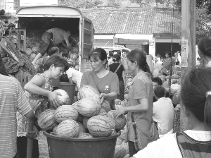 为了便利果农,保靖县清水坪镇党委设立水果专用场地,开辟绿色通道,吸引外地客商前来收购水果。连日来,每天近20吨的新鲜水果销往外地,助果农增收。 俞采华 摄