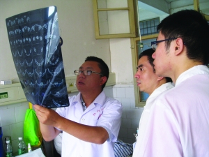 据杨主任介绍,泌尿外科业务治疗范围主要是诊治各种成人、小儿、女性泌尿系统疾病及男科疾病。湘西地区医疗条件差,经济落后,医疗人才缺乏,即使是专科医生临床经验少,熟练程度低。以往,遇到疑难复杂病例家属都想请外面的专家医生来诊治,这不仅耽误了最佳治疗时机,而且患者要承受更长时间的病痛和更多的医疗费用。近年来,该科室在引进人才的同时还引进先进设备和微创前沿治疗技术,使得业务水平直线上升。在传统治疗的基础上进一步熟练经皮肾碎石取石术,积累了很多对复杂性肾盂结石、肾盂铸形结石、鹿角形结石的经验;扩大了腹腔镜下手术的病种治疗,如肾盂成形术、隐睾探查、输尿管切开取石术、肾癌根治术、肾上腺肿瘤切除术、肾囊肿手术等;做强前列腺癌的早期诊断,如前列腺癌穿刺、特异标志物的检测等;做细结石成分分析,指导患者饮食,以减少结石的复发;加强男性学的基础和临床研究,开展对男性不育症的诊断和治疗,对男性性功能障碍的早期诊断和治疗;尤其是加强对小儿泌尿外科方面培训,提高了尿道下裂等先天疾病的手术成功率;同时开展女性压力性尿失禁、慢性膀胱炎等疾病的治疗。近几年来,每年派2-3名医师外出学习培训专业知识和先进技术,并发表国家级和省级核心刊物2-3篇。2010年5月,该科室率先组织湘西州各位同仁成立了湘西州泌尿外科医学会。