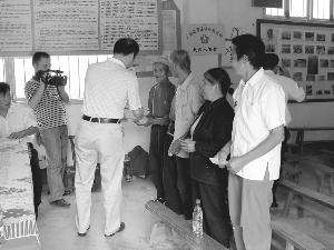 近日,由泸溪县委办、县财政局、县档案局等9家单位组成的联合扶贫工作队,与潭溪镇小陂流村党员干部群众代表共商建整扶贫大计。图为扶贫工作队为困难党员发放慰问金。