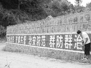 7月以来,吉首市双塘镇采取多种方式开展综治宣传,全镇新刷固定标语46条,实现每村2条以上综治固定宣传标语,全镇群众参与综治工作氛围高涨。图为7月18日,双塘镇大兴村综治指导员在刷标语。