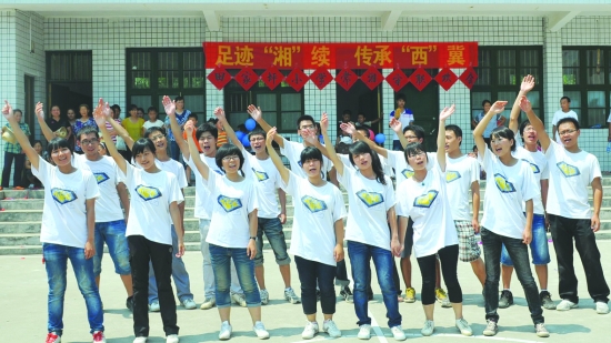 7月25日,长沙理工大学拓荒者协会驻保靖县毛沟镇田家坪村支教队,在田家坪小学举行联欢会,为学生和村民作告别演出。7月9日以来,长沙理工大学拓荒者协会在田家坪小学进行了为期半个月的支教,与学生和村民结下了深厚的情谊。 周改玲 摄
