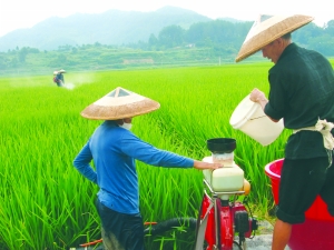 7月27日,永顺县农业局专业技术人员组织农作物病虫害专业化防治队,为石堤镇排楼村1500亩水稻防治水稻卷叶虫、纹枯病及稻灰虱。