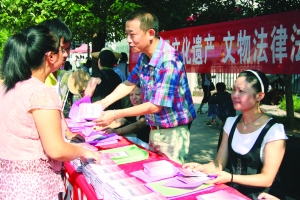 8月17日,凤凰县文物局工作人员冒着酷暑走上街头,免费向该县群众和游客发放世界文化遗产知识读本和文物保护法,为该县加快申报世界文化遗产工作营造了积极的舆论氛围。