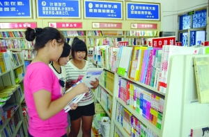 8月24日,凤凰新华书店里几名初三女生正在选购教辅书籍。开学临近,许多书店把中小学生喜爱的书籍摆放在最显眼的位置,有的还设立了专区。“现在家长对孩子的教育都很重视,许多辅导书籍或课外读物畅销。”书店老板表示,开学前后的一两周都是销售旺季。
