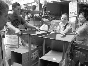 8月29日,永顺县吊井乡农民正在选购手摇电动风车。收割在即,手摇电动风车,减轻了劳动强度,提高了劳动效益,很受农民朋友欢迎。