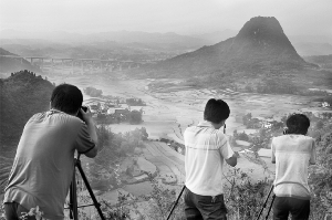 8月31日,摄影爱好者在拍花垣县麻栗场镇尖岩山水稻成熟后的梯田。水稻成熟后的尖岩山梯田,呈一幅迷人的风景画,吸引了大批摄影爱好者拍照。