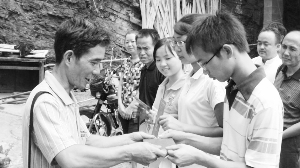 9月4日,古丈县坪坝乡亚家村爱心人士为高考学子送上助学金。今年夏天,该村的向广静、向素祯和向安荣分别被西安外国语大学、淮北师范大学和湘南学院录取,该村30余名在外工作人员得知这一情况后,纷纷返乡捐款助学,仅一天时间就筹集到助学款9600元。